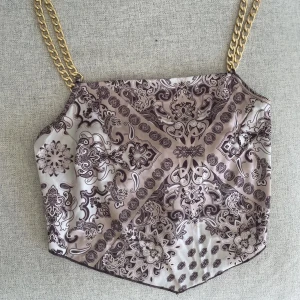 rutig korsett-topp - Säljer en snygg jätte trendig  korsett-topp med smala axelband och svartvitt rutigt mönster. Banden är avtagbara! Storlek S , har inga fler bilder tyvärr . De går även att knyta den i ryggen