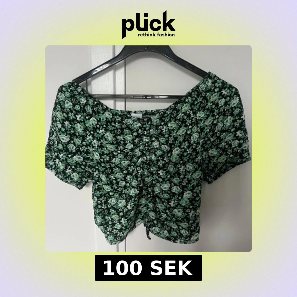 Säljer en söt croppad topp från Lindex med grönt och vitt blommönster på svart botten. Toppen har korta ärmar och en lätt rynkad detalj framtill. Perfekt för varma dagar och enkel att matcha med jeans eller kjol. Säljer toppen då jag inte använder den längre, använd två gånger och är i väldigt bra skick. Passade mig perfekt som har S i toppar.