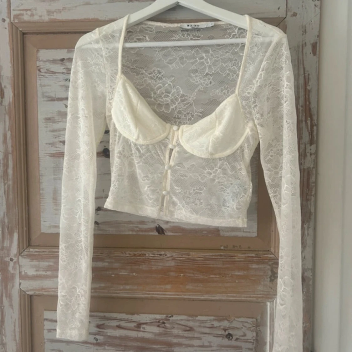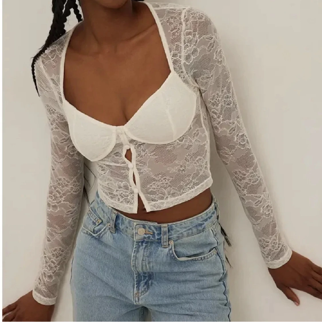 Säljer en super fin spets topp från Na-kd i storlek S! Endast testad💕 Skulle säga att den passar Xxs-S! Bilden är lånad!