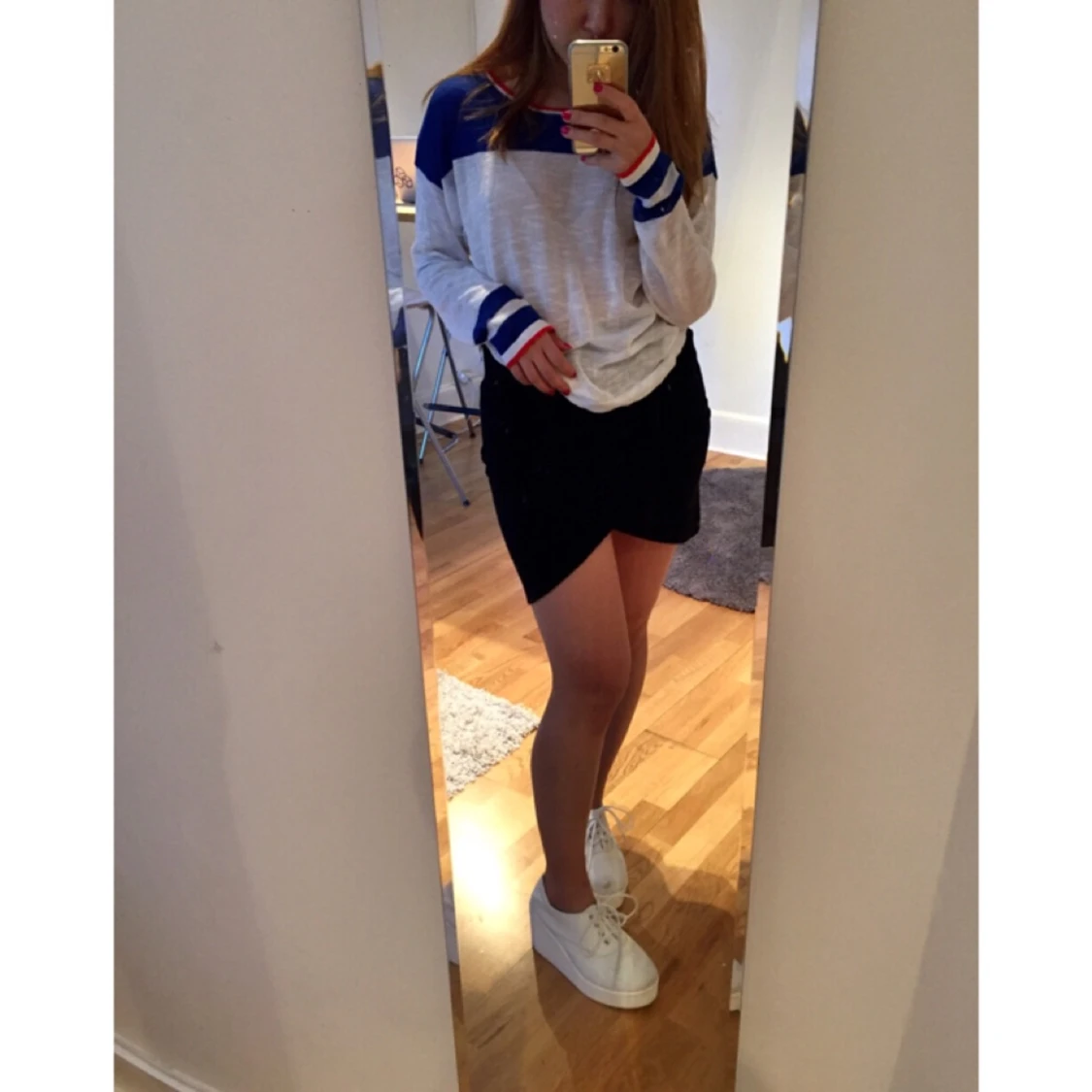 Svart blus med v-ringning från 157 - Säljer en svart blus från 157 i storlek S. Blusen har v-ringad hals, korta ärmar och tre dekorativa knappar framtill. Modellen är croppad och har en enkel, stilren design som passar till många olika looks.
