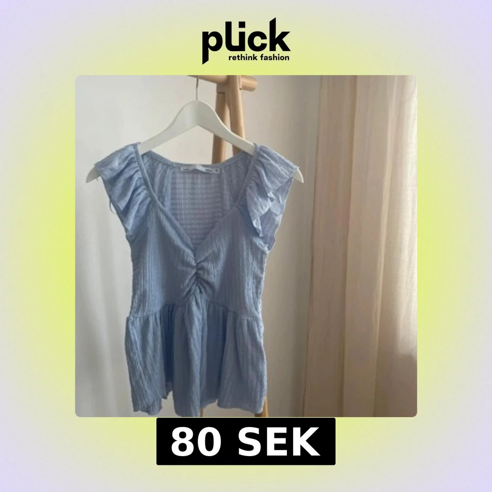 Säljer en söt blå randig blus som jag sytt vid framsidan
