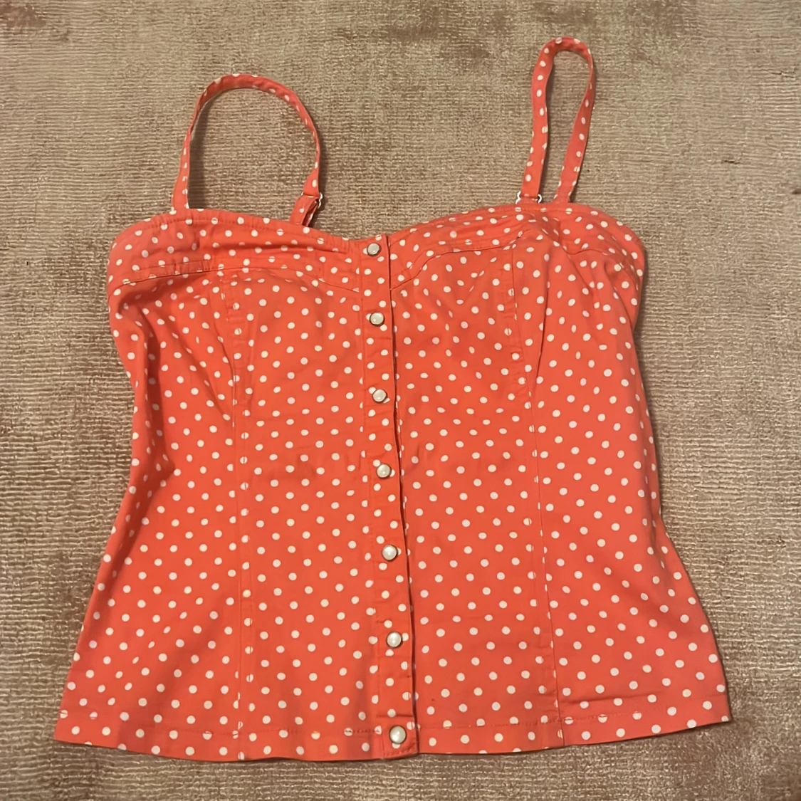 Snygg prickig topp! Storlek M men kan vara en S också!