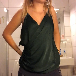Så fin mörkgrön topp i sidenliknande material! Perfekt till middag eller liknande! Älskar den men det är inte riktigt min stil längre så tror att nån annan skulle gilla den mer. Storleken är L men passar bra på mig som e S/M
