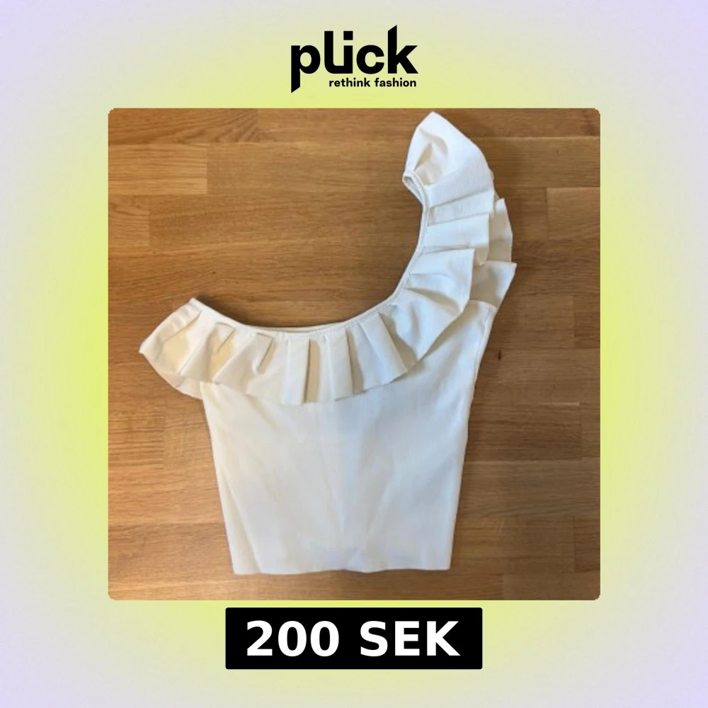 Superfin vit topp med oneshoulder-design och bred volang längs halsringningen. Jättepopulär från Zara i nyskick ❣️