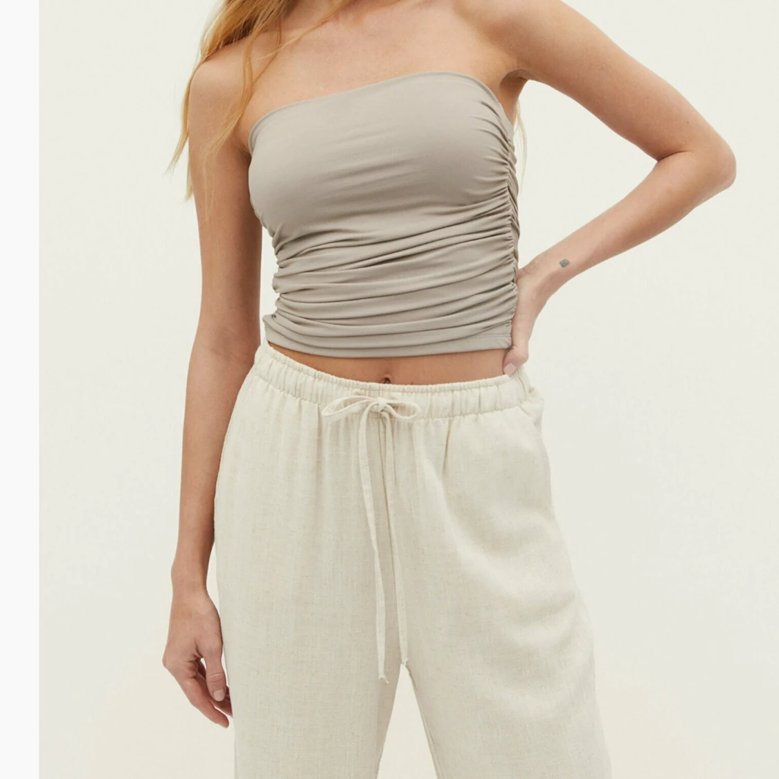Jätte fin beige bandeau topp från stradivarius. Säljer då den inte kommer till användning och den är helt ny.