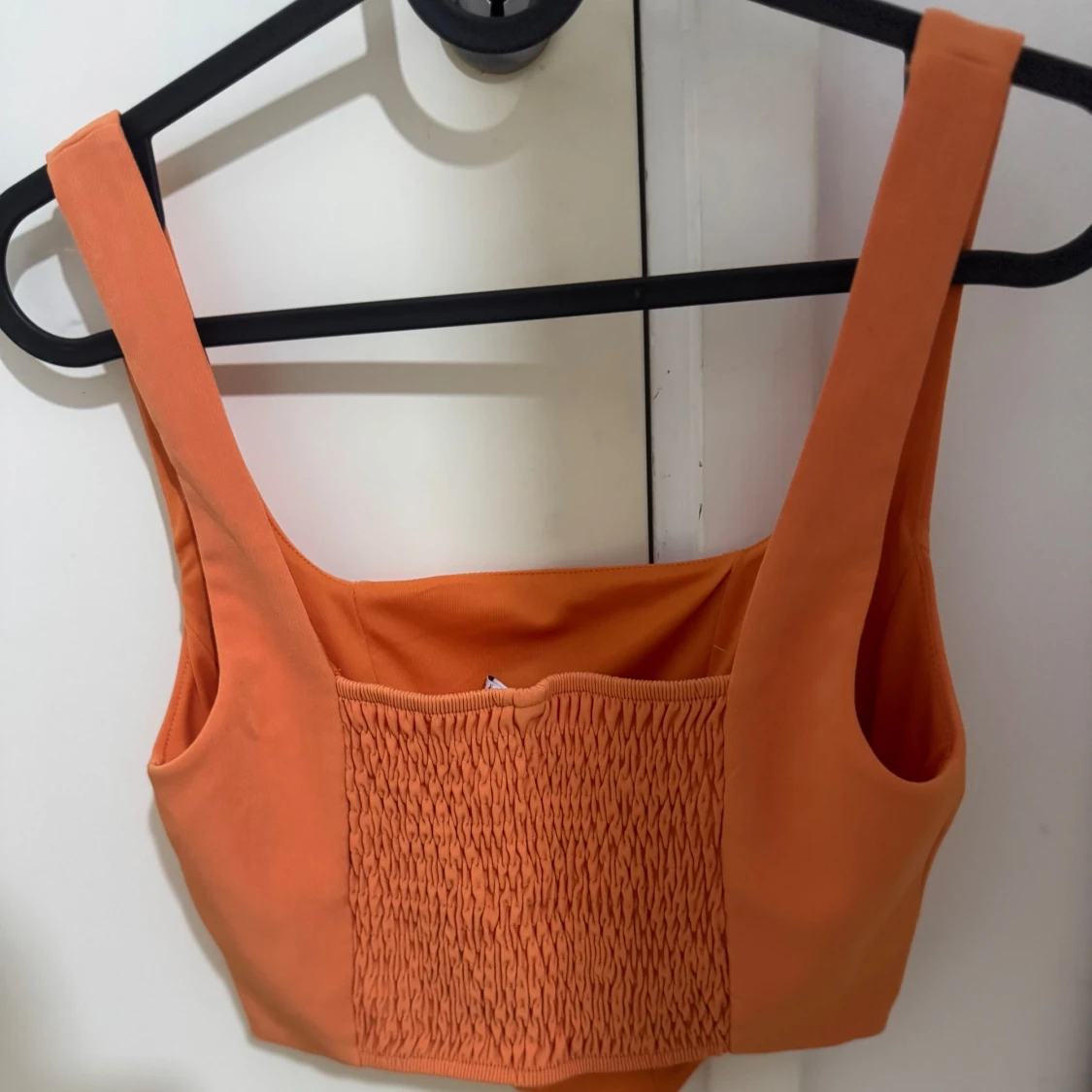 En orange topp i stl XS från Stradivarius som är i väldigt bra skick säljs för 75 kr.
