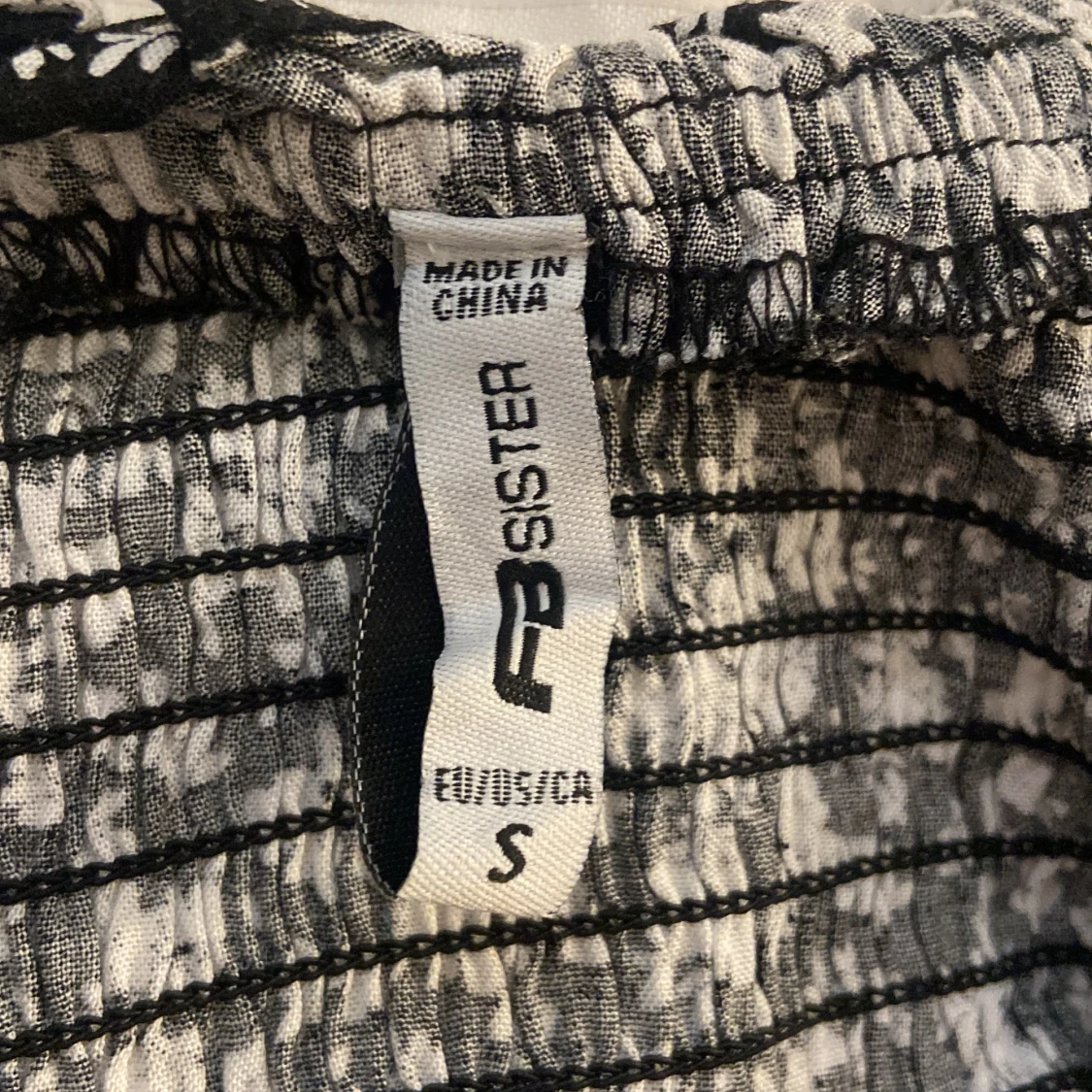 En svart topp med vita blommor från FB Sister. Toppen har korta ärmar och en tight passform med elastisk smock. Den har en knytning framtill och en vågig nederkant.