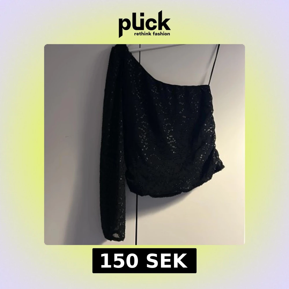 Säljer en svart glittrig oneshoulder-top från ONLY i storlek S. Toppen har en lång ärm och är täckt av paljetter som ger ett riktigt snyggt skimmer. Perfekt för dig som vill sticka ut med en cool och trendig look. Använd 1 gång