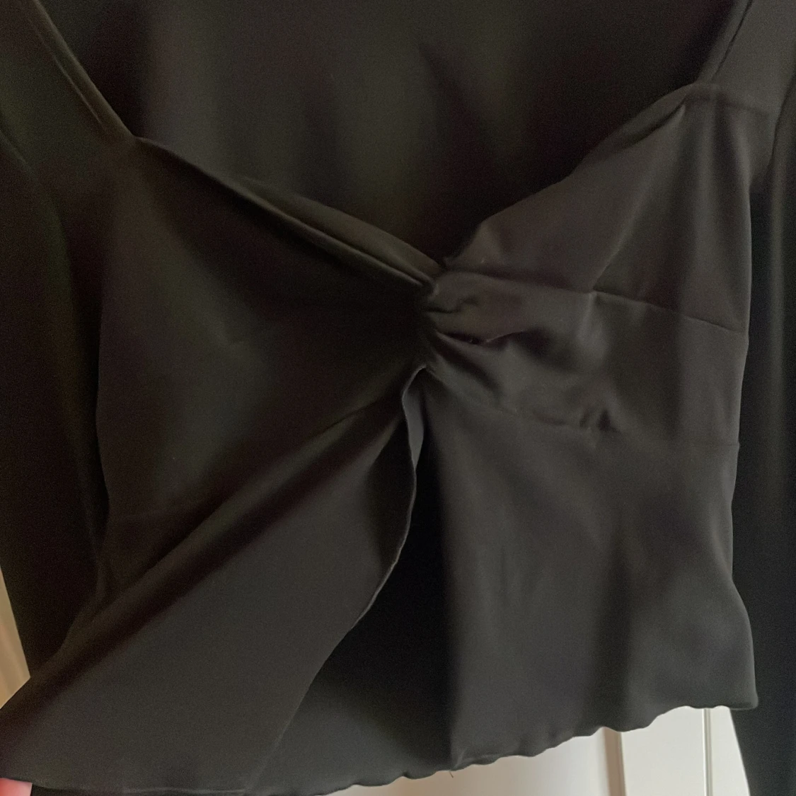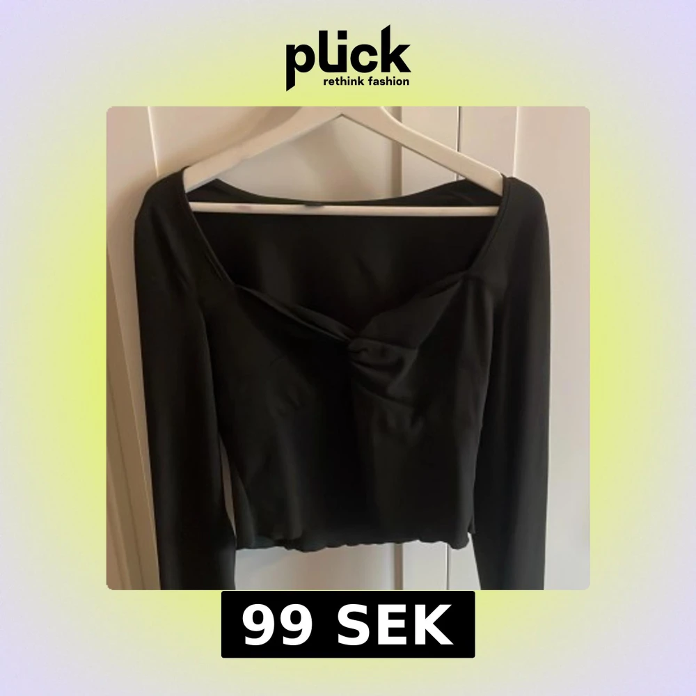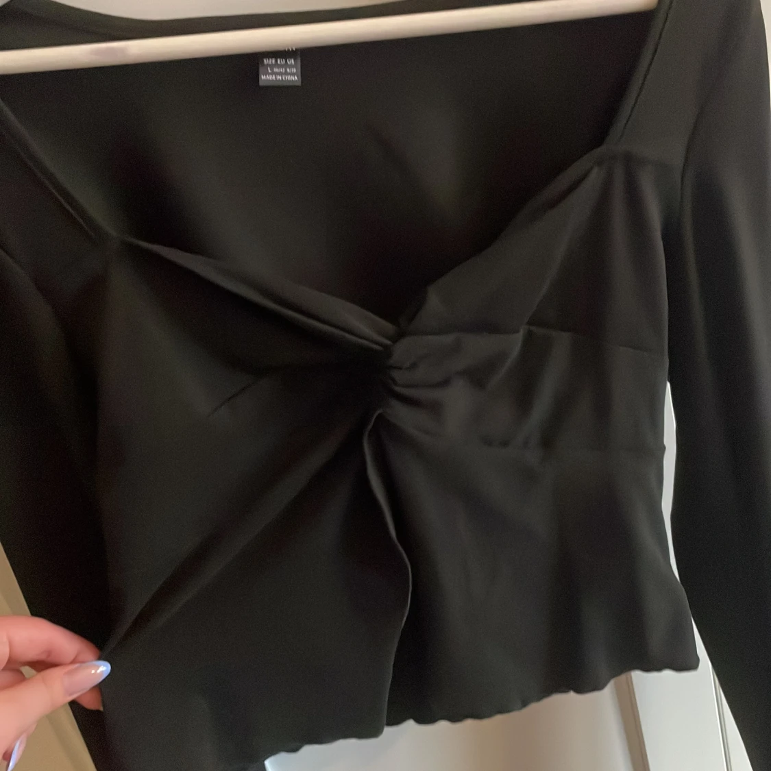 Säljer en svart långärmad topp med omlottkänsla och twistad detalj framtill. Liknar ginas knyt tröjor. aldrig använd, bara hängt i garderoben