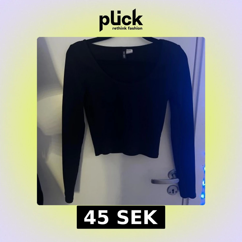 En svart långärmad topp från Divided med rundad urringning och ribbad struktur. Modellen är croppad och sitter snyggt på kroppen. Perfekt att matcha med jeans eller kjol för en clean look.