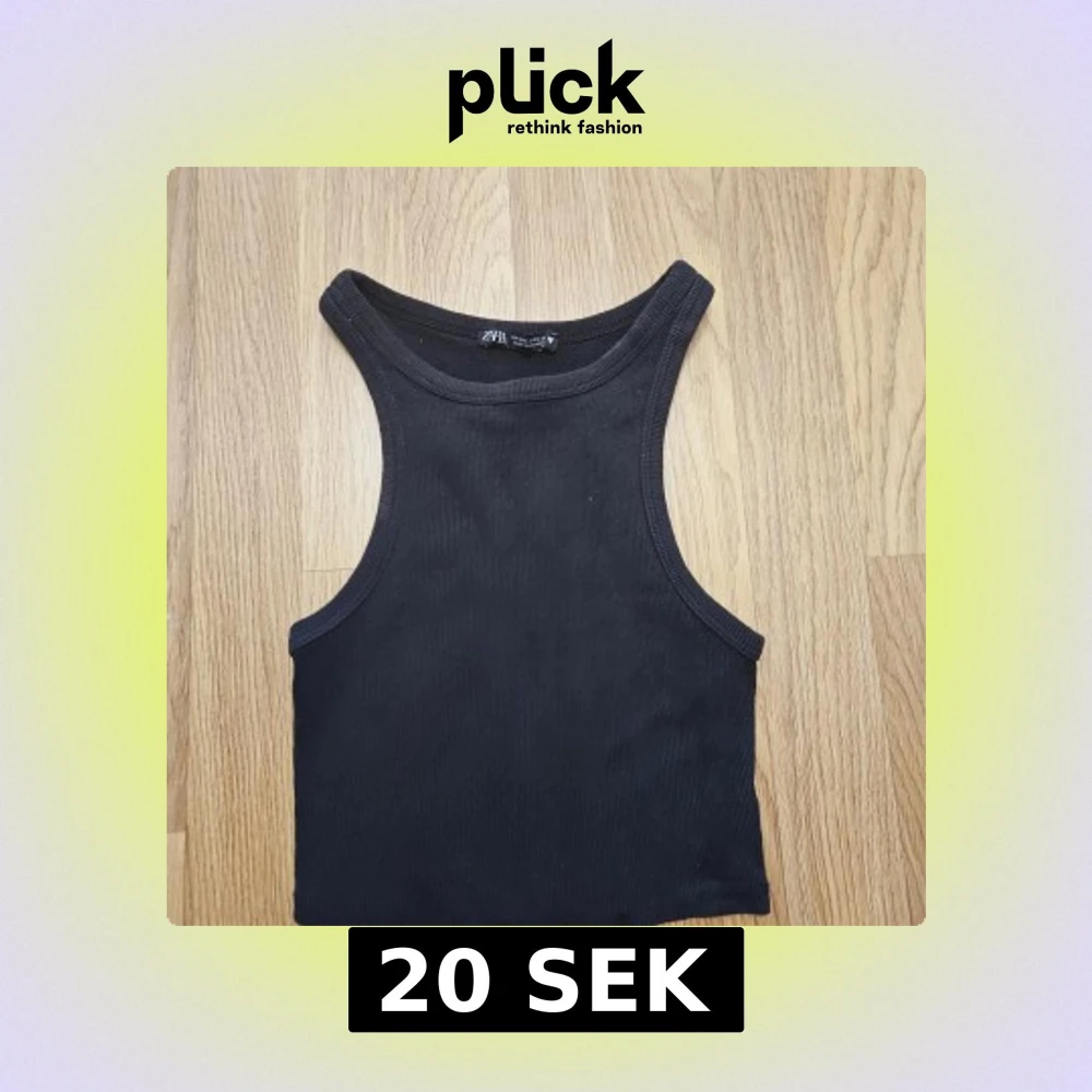 Säljer en svart ribbad linnetopp från Zara. Modellen är croppad med breda axelband och rundad halsringning. Perfekt att matcha med jeans eller kjol för en clean och stilren look.