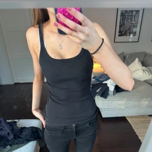 Säljer en svart ribbad linnetopp med smala axelband. Toppen har en tight passform och är perfekt för en stilren look. Passar bra till både jeans och kjol 💗 står ej för frakt eller postens slarv!!