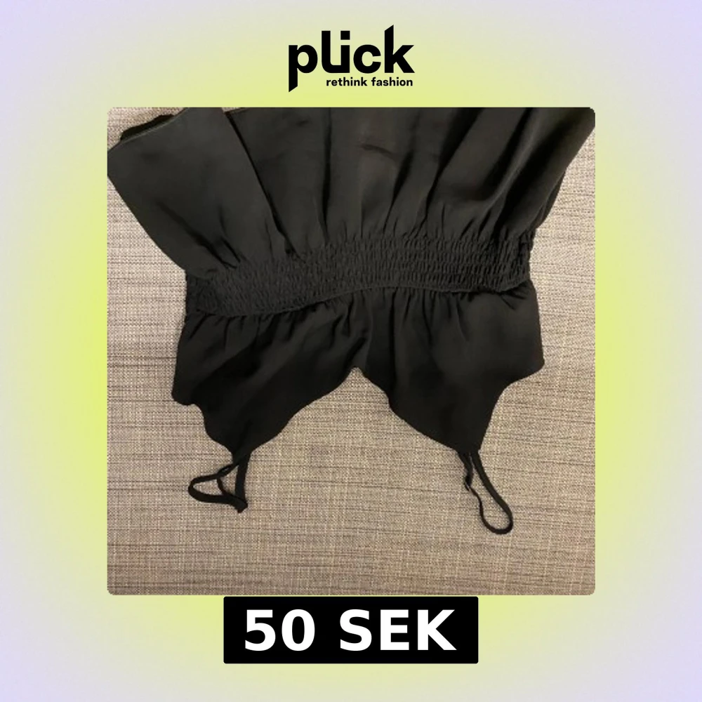 Snygg svart topp med smockdetaljer i midjan och volangkant. Axelbanden är justerbara
