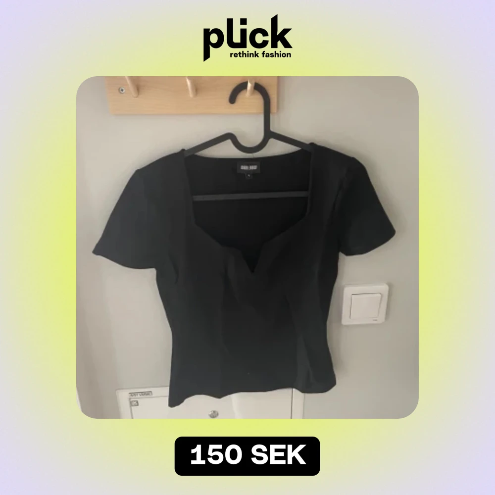 Säljer en stilren svart topp från Bubbleroom i storlek S. Toppen har en v-ringad design och korta ärmar, perfekt för både vardag och fest. Materialet känns mjukt och bekvämt mot huden.