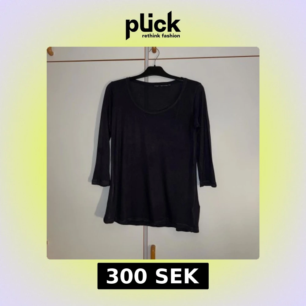 En enkel svart topp från JC i mjuk och tunn viskos. Modellen har rund halsringning och trekvartsärmar, vilket ger en chill och stilren . Storlekslappen finns inte kvar men det är storlek S mått kan fås vid önskemål