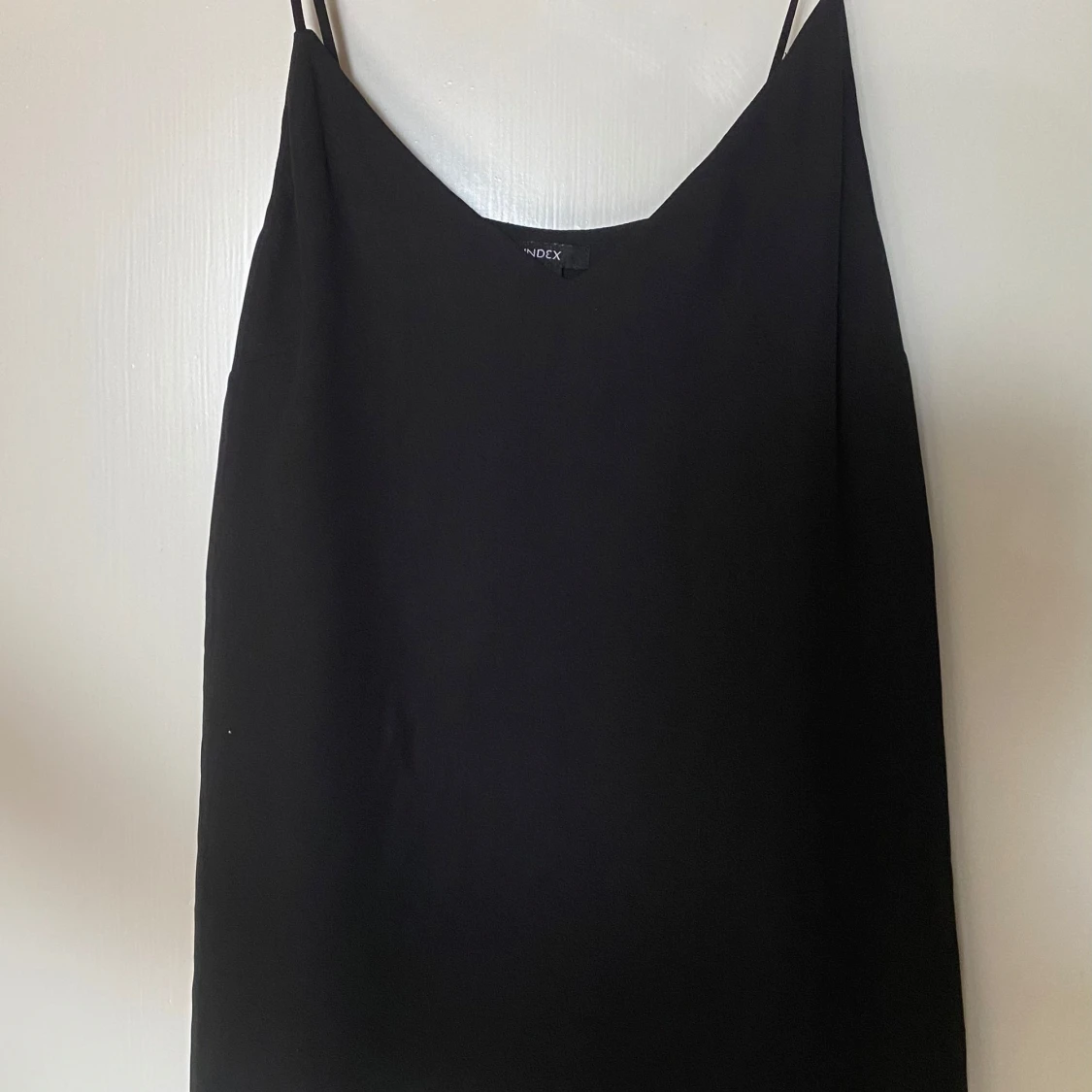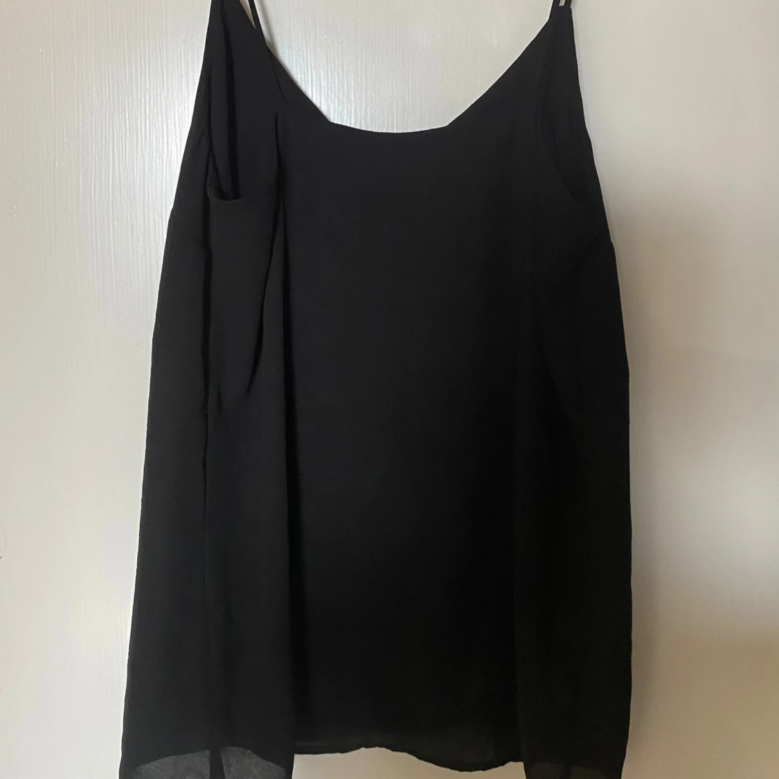 Enkel och stilren svart topp från Lindex med tunna axelband och rak passform. Toppen har en lätt, flowy känsla som gör den perfekt för varma dagar. Tillverkad i ett mjukt, tunt material som känns svalt mot huden. Frakt tillkommer