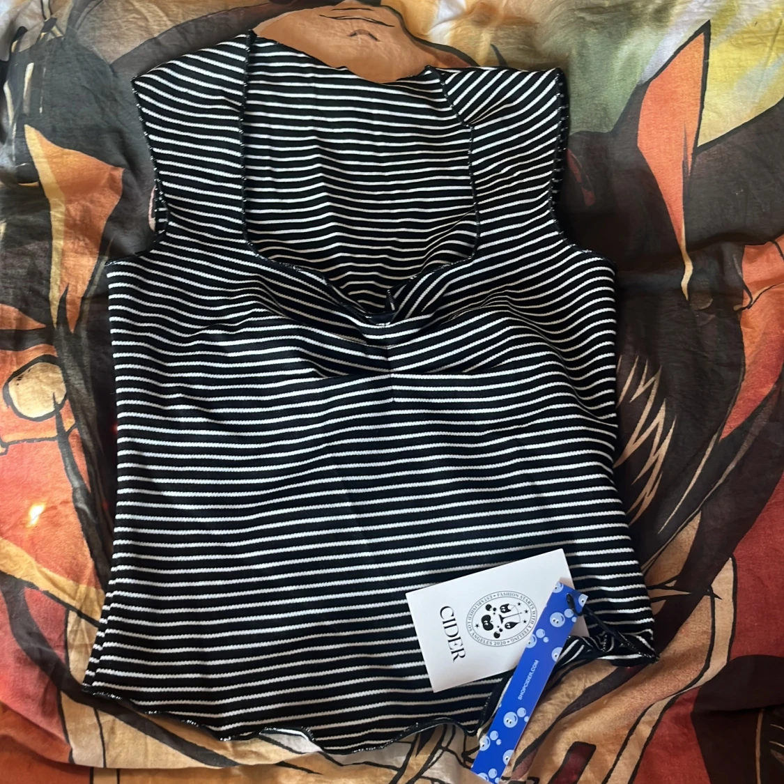 Säljer en snygg svartvit randig topp från Cider. Toppen sitter enligt figuren, aldrig använd.❤️