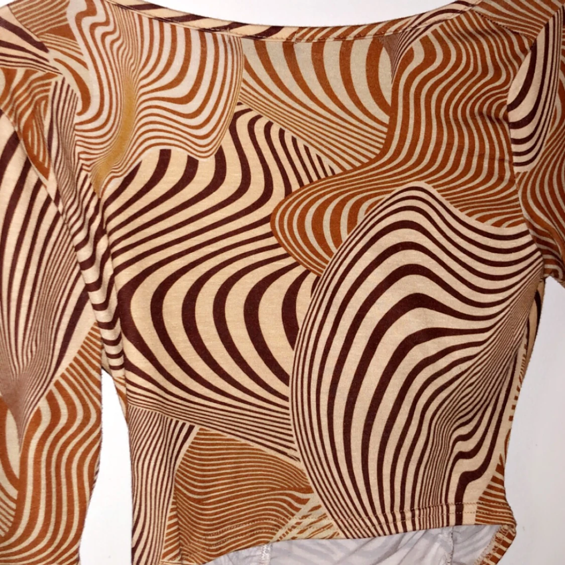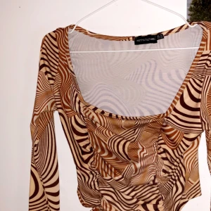 Säljer denna snygga topp i nyskick. Använts en gång. Den har ett jättemjukt och stretchigt material och är i storlek 38. Banden längst ner kan man själv välja hur man vill knyta. 🤎