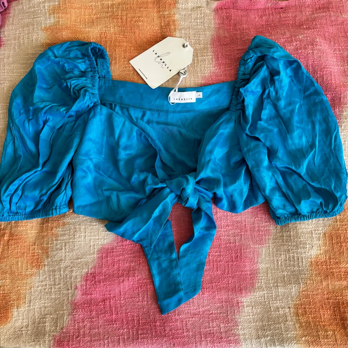 En underbar kort tie topp, helt ny! 🩵 finns även en magchande kjol till vid intresse 💐