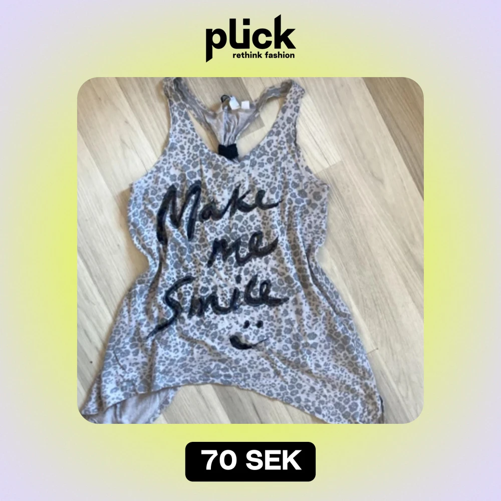 Jättefin leopardmönstrad topp med glittrig text⭐️ unik i ryggen, perfekt för sommaren!