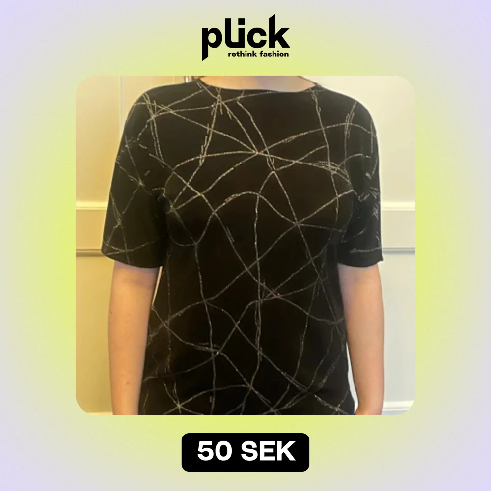 Svart syntettopp med silverlinjer, handtvätt. Stl L. Fint skick.