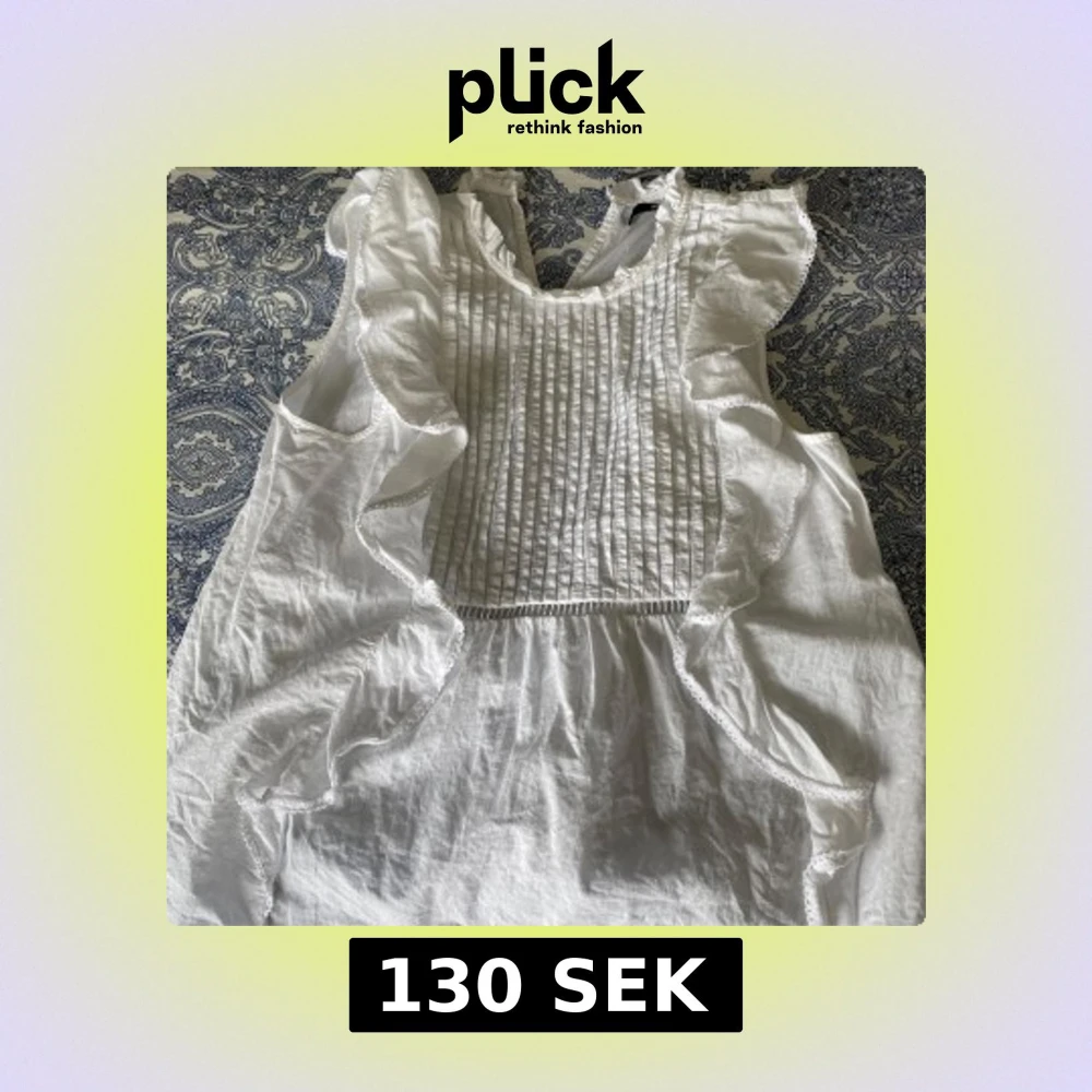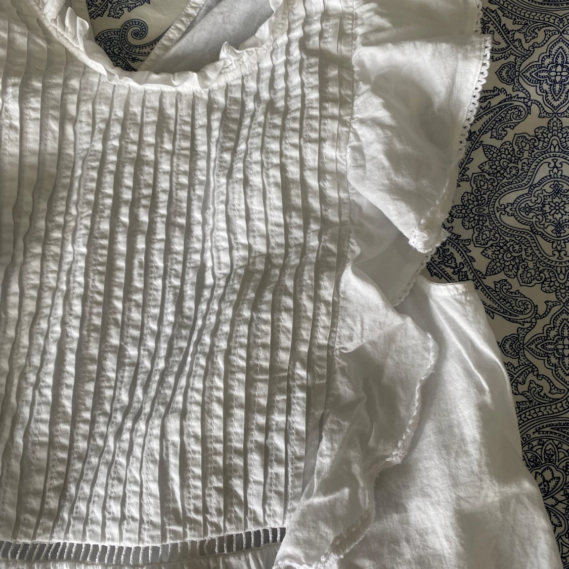 Supersöt vit blus med volanger från BikBok i storlek XS. Endast använd en gång så är i jätte fint skick💓