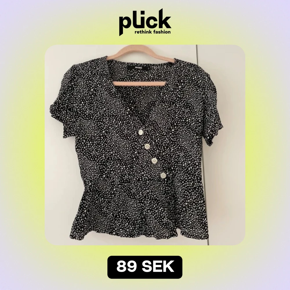 Svart topp med vitt mönster och knappar, ifrån Bikbok. Kommer inte till användning, endast använd ett fåtal gånger så i bra skick💗😍🥰