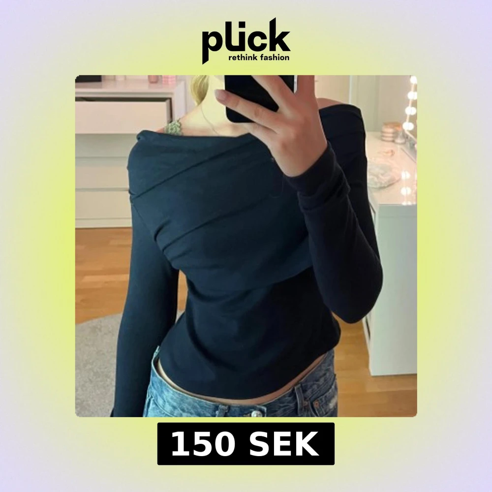 Säljer en svart långärmad topp med omlott-detalj och offshoulder-skärning. Snygg och figurnära passform som framhäver axlarna. Perfekt till jeans eller kjol för en trendig look. Toppens material känns mjukt och stretchigt. Köpt på second hand och utan lapp så vet inte vart den är ifrån.