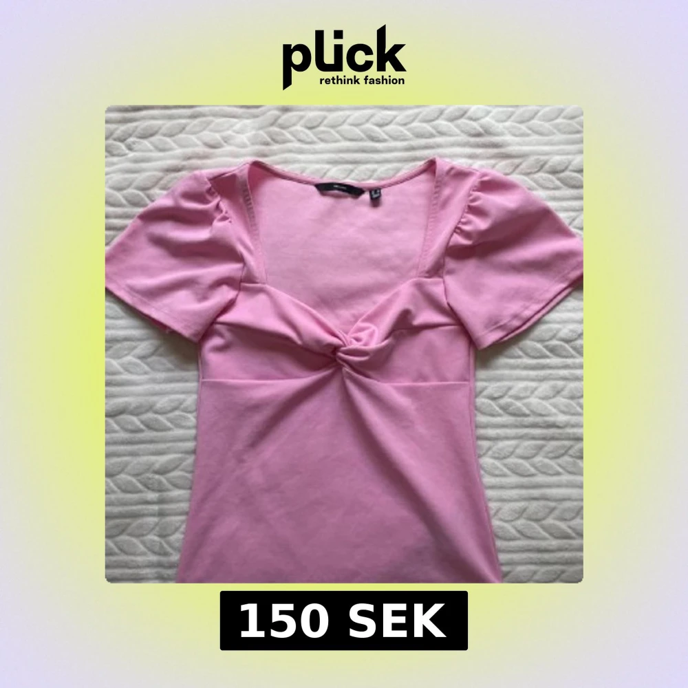 Säljer en söt rosa topp från Vero Moda med korta puffärmar och snygg knutdetalj framtill. Toppen har en djupare urringning och är tillverkad i mjuk bomull. Perfekt för dig som vill ha en feminin och trendig look!💞💞liten i storleken 💞