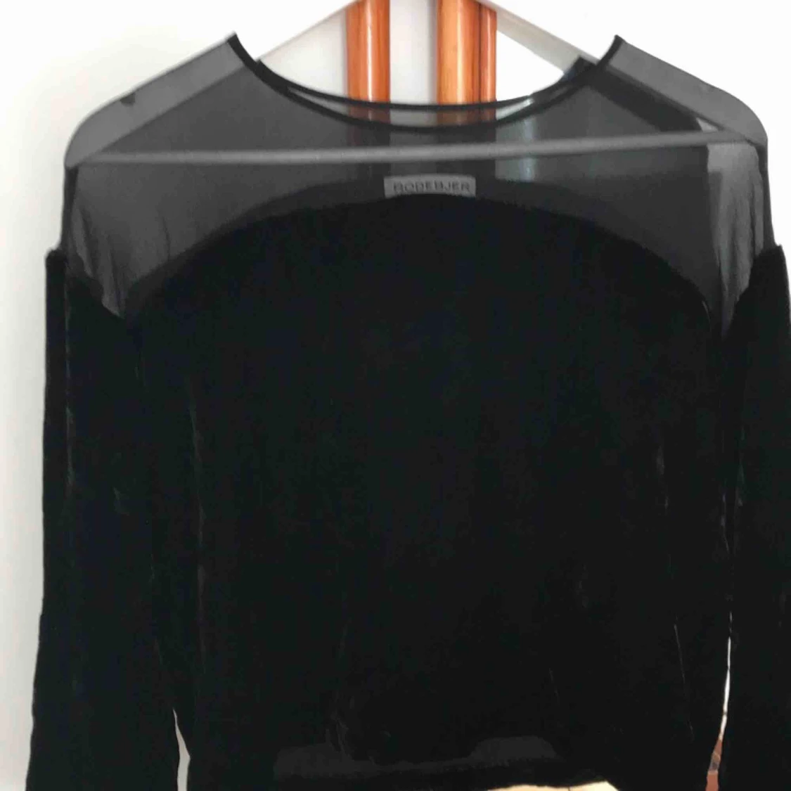 Säljer supersnygg topp från rodebjer, endast använt några gånger. I sammet och svart transparent tyg upptill.