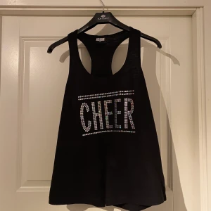 Svart träningslinne med texten ”cheer” i paljetter. Finns i Västerås, annars står köparen för frakt.
