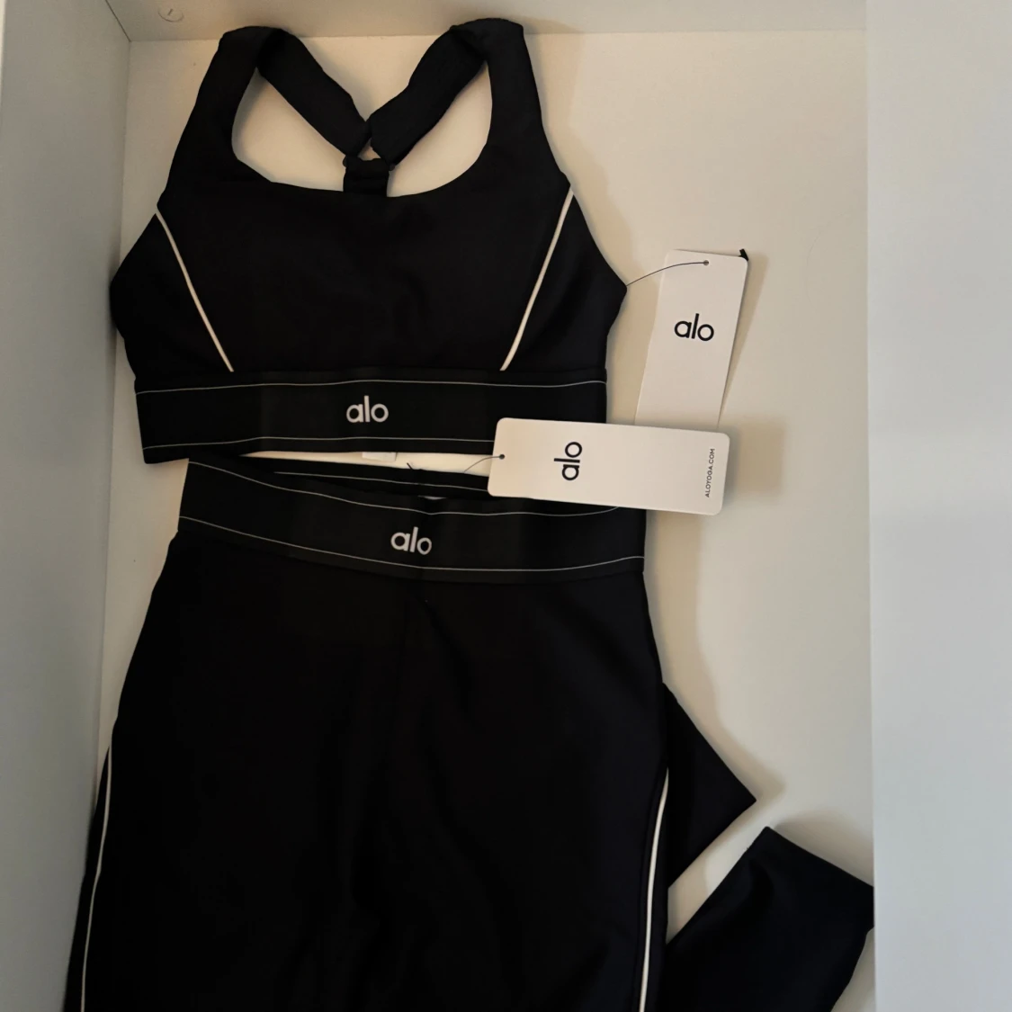 Säljer ett oanvänt Alo set i stl S som tyvärr inte passar mig, därav ingen bild på. De två sista bilderna är egna. Super snyggt o skönt det perfekt till träning i alla former eller bara till vardags. Nypris 2900. Pris kan diskuteras!
