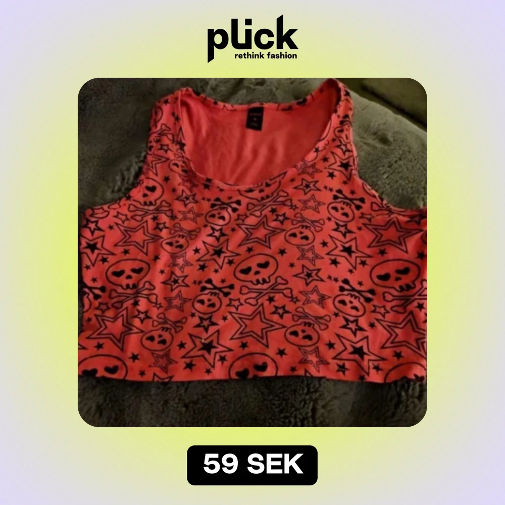 Rosa tröja med döskallar och stjärnor, använd ca 1 gång, fint skick, bild nr 2 visar bättre hur färgen egentligen ser ut (dåligt ljus på första), kortare modell, Strl S.