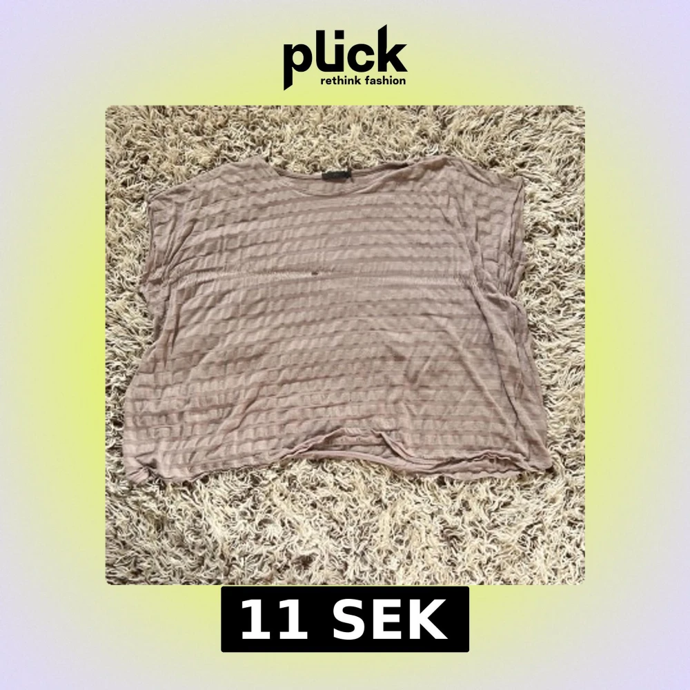 Luftig och tunn topp från frk i beige med diskreta ränder. Modellen är kortärmad och har en avslappnad passform. Perfekt för dig som gillar basic med en twist. Materialet känns mjukt och lätt mot huden. Den har tyvärr några hål och det värkar som att någon har klippt av armarna. Storlek M