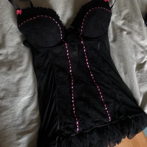Korsett-liknande topp/negligé i fint skick köpt second hand, endast använd en gång. Går inte att se storlek eller märke men upplever att den är 75D då den är något stor på mig som vanligtvis har C-kupa. Möts upp eller skickar😇