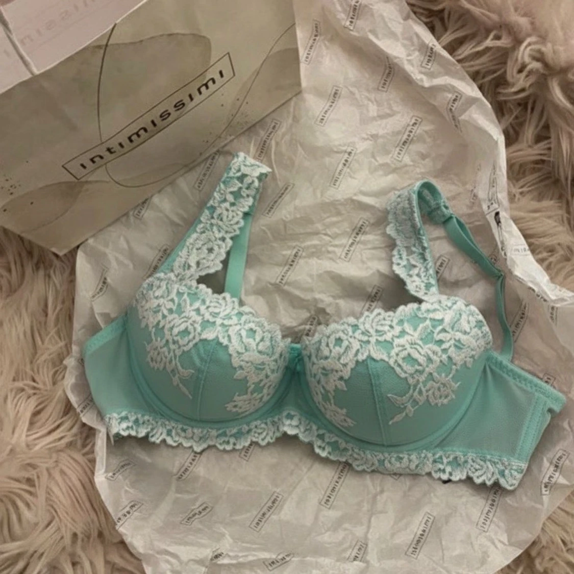 Säljer nu denna superfina & trendiga spets bh från Intimissimi med vita spetsdetaljer och blommigt broderi. Axelbanden är dekorerade med spets och nederkanten har en söt volangkant. Perfekt för dig som vill ha något extra snyggt under kläderna🤍
