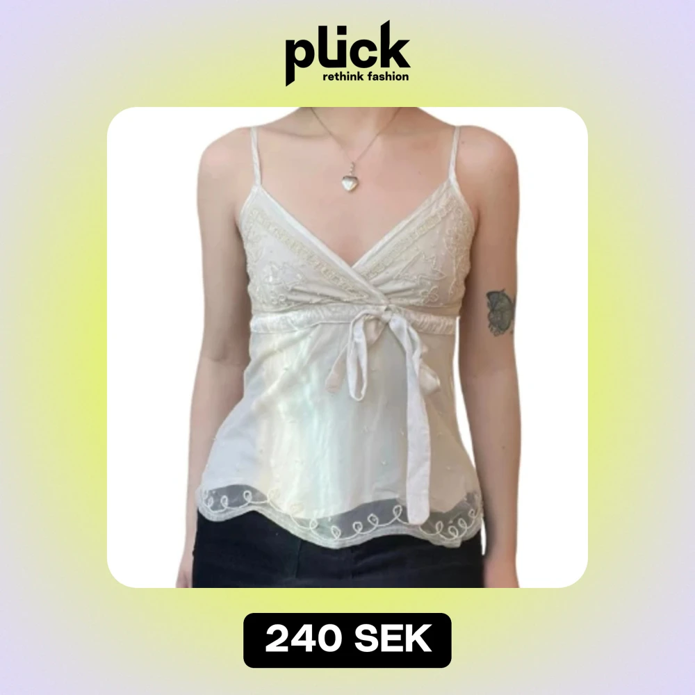 (Använd köp nu för att köpa, först till kvarn!) vintage linne från vero Moda med paljetter och pärlor 💜 har en väldigt ljus missfärgning på ena bandet men det märks inte. Har justerbara band och bandet går att knyta åt