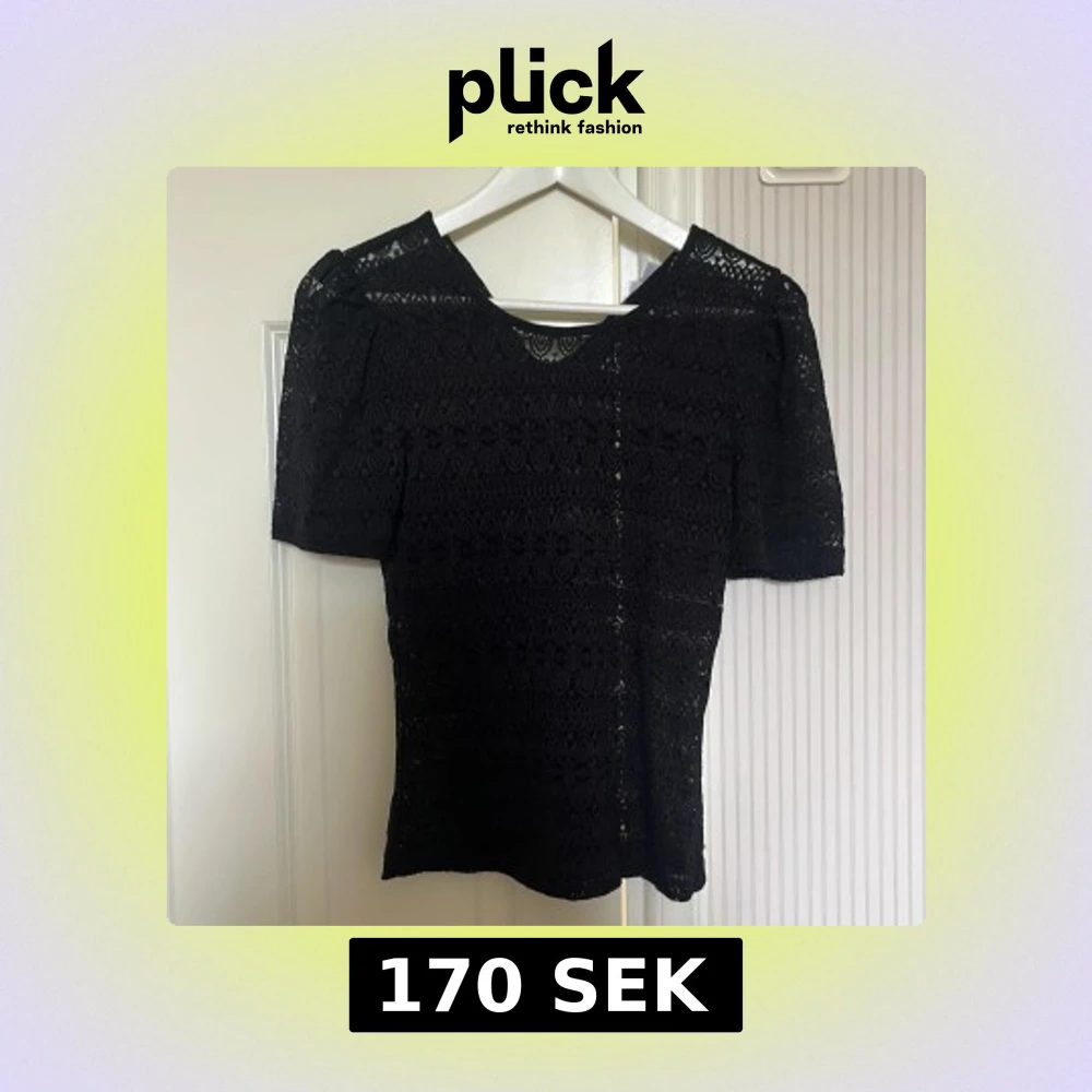 Supersnygg svart blus från Vila i spets med puffärmar och rund halsringning. Blusen har ett detaljerat blommigt spetsmönster som ger en romantisk vibe och är lätt transparent. Perfekt att styla med jeans eller kjol för en trendig look.