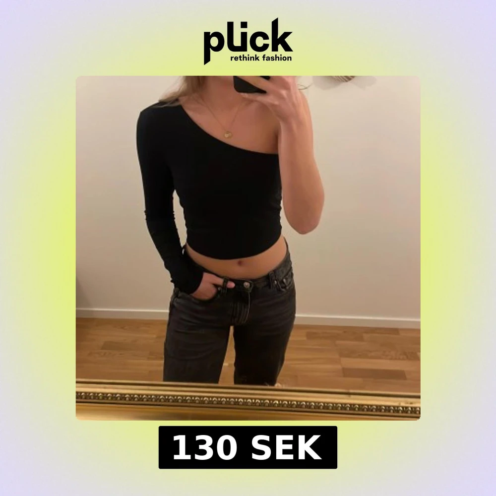 Snygg svart oneshoulder topp med lång ärm. Perfekt för en trendig look. Toppen är croppad och passar utmärkt till både jeans och kjol.