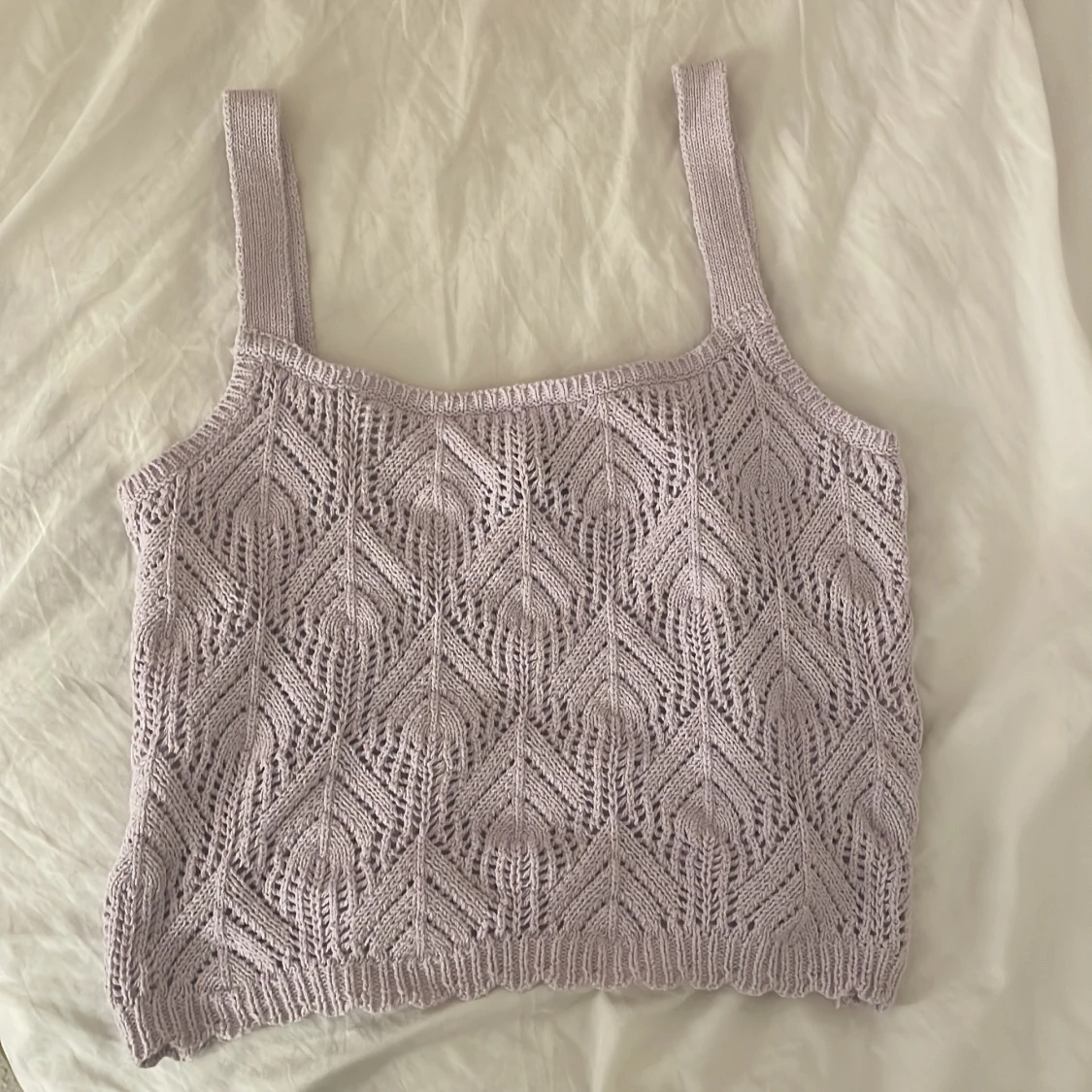Ljuslila virkad topp från Lindex. Aldrig använd så den är som ny fast utan prislapp. Den slutar ungefär vid naveln.