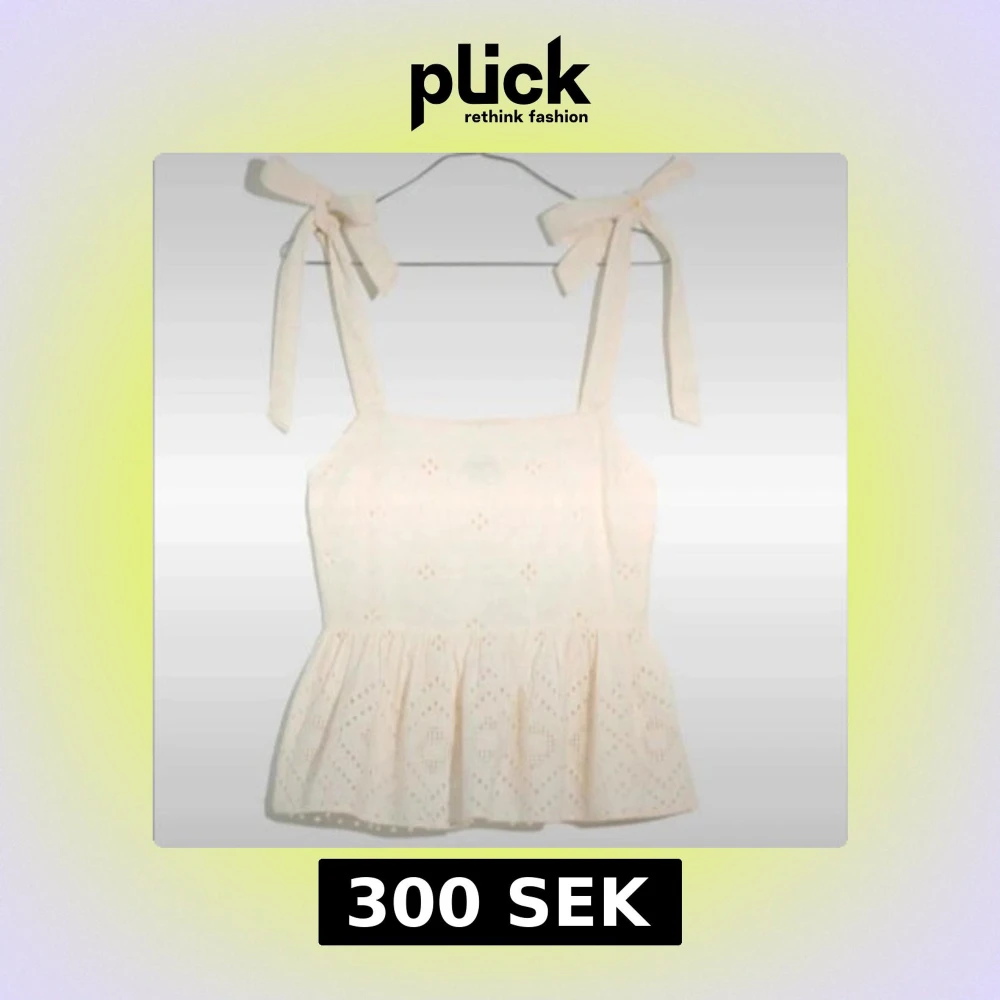 Supersöt vit linnetopp från Madewell med broderade detaljer och volang nertill. Toppen har knytband på axlarna och är ärmlös, perfekt för en somrig look. Tillverkad i bomull och har en luftig, lätt känsla. Säljs i storlek XXS. Nypris ca 1000kr