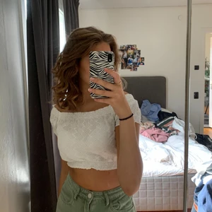 Vit sommartopp från H&M. Storlek S, passar också XS och M. Liten grå fläck på framsidan, syns inte så mycket pga tröjans mönster. Köparen står för frakt.