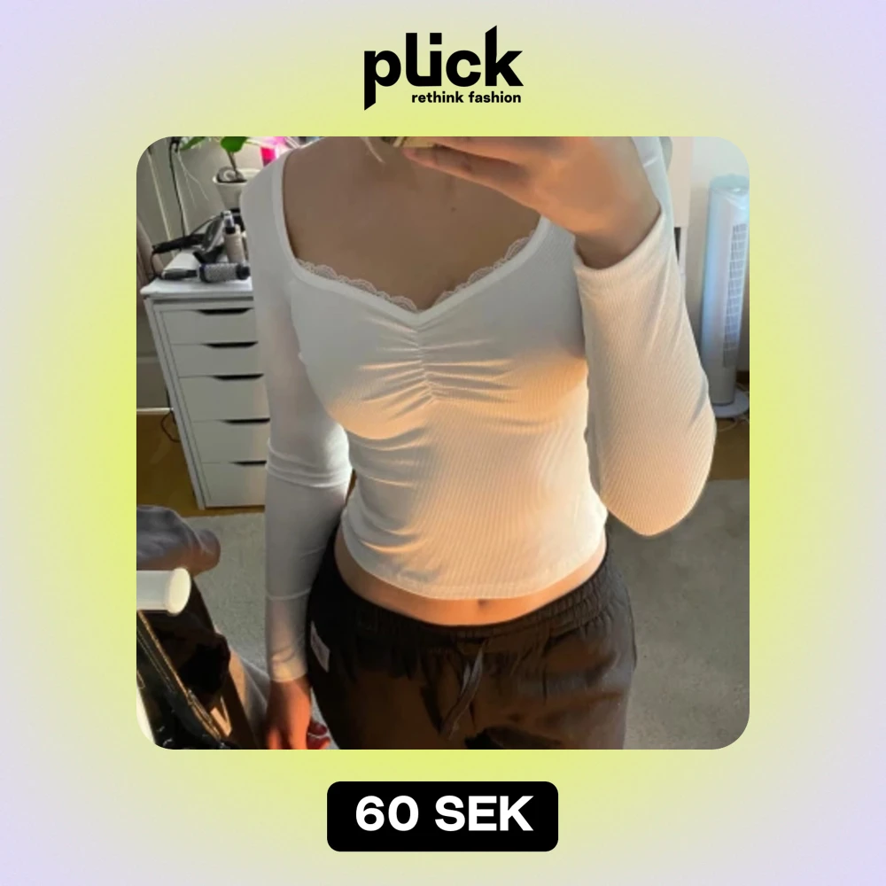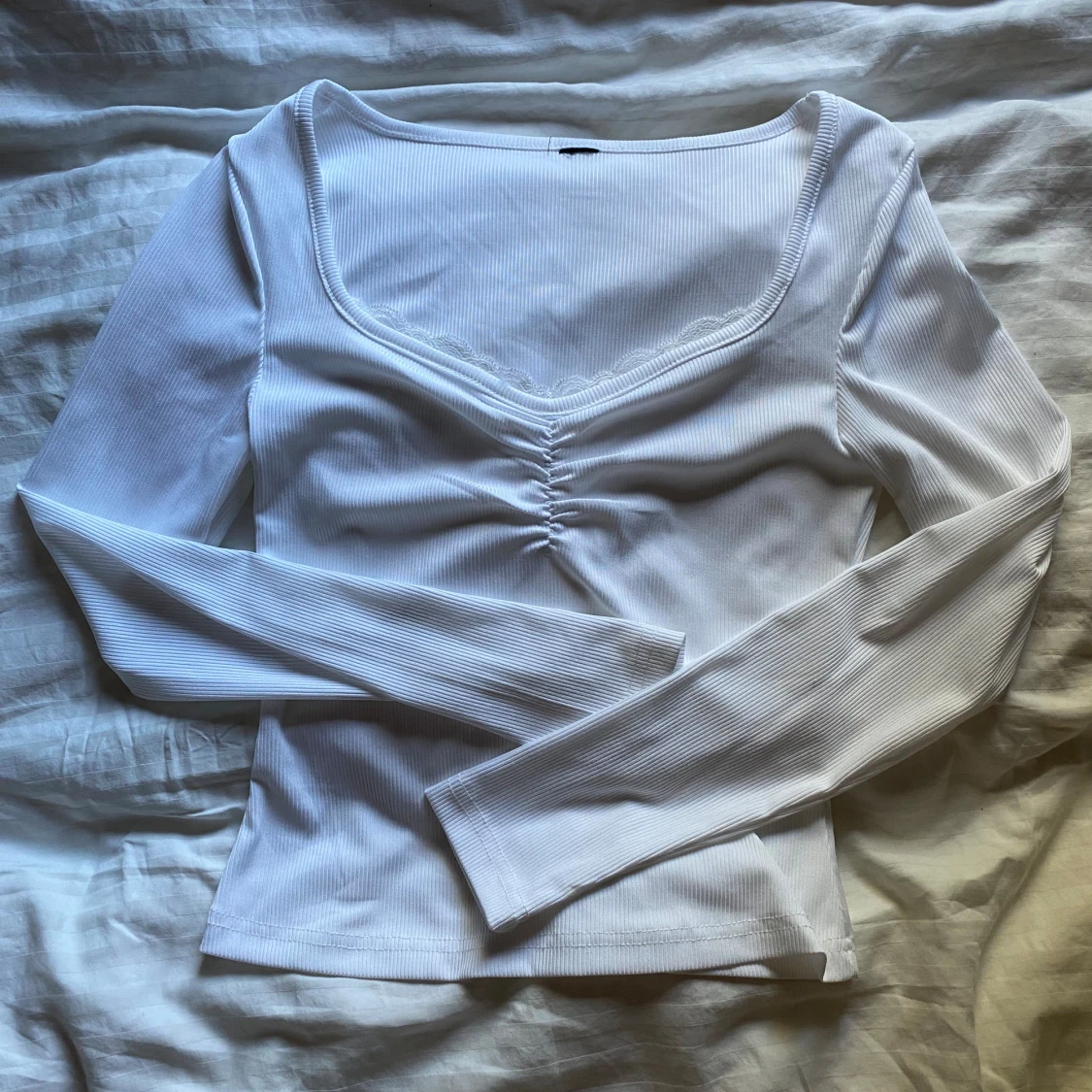 Supersöt vit långärmad tunn topp med spets💗Den är i storlek XS, det är bara att fråga om mått om ni vill ha det☺️
