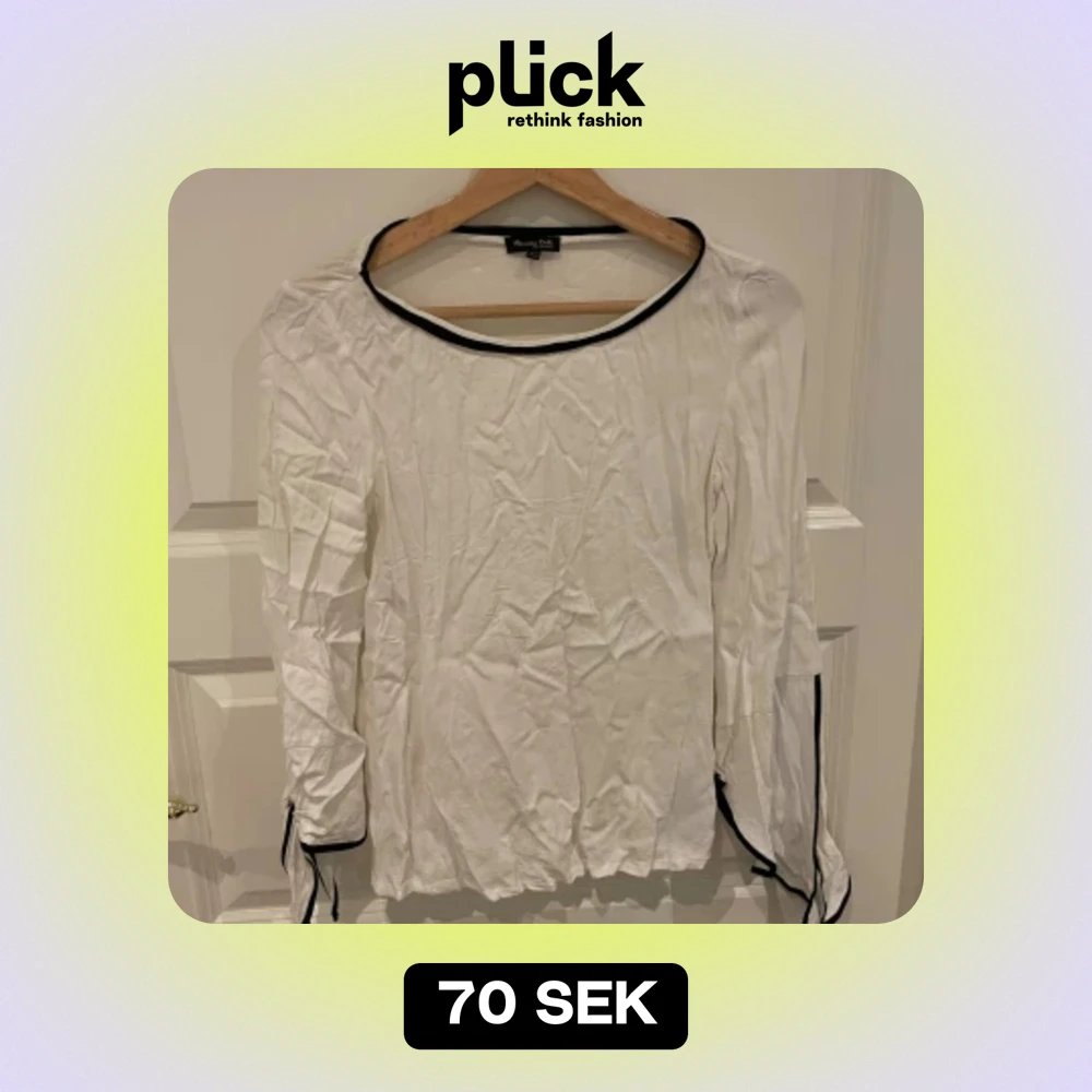 Säljer en stilren vit långärmad topp från Massimo Dutti. Den har svarta detaljer längs halsringningen och ärmsluten, vilket ger en snygg kontrast. Perfekt för både vardag och festliga tillfällen!