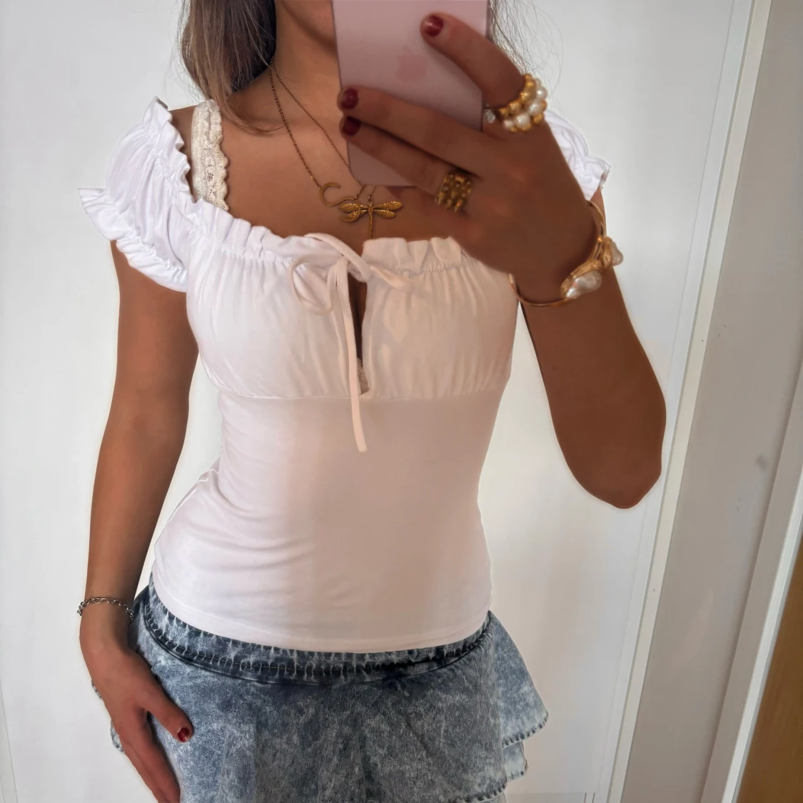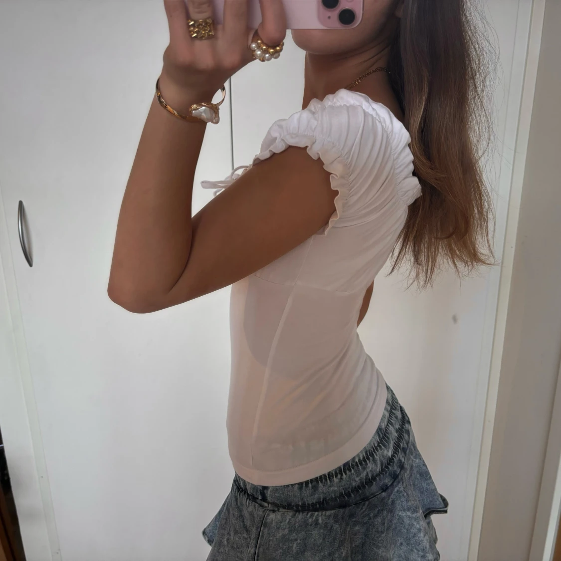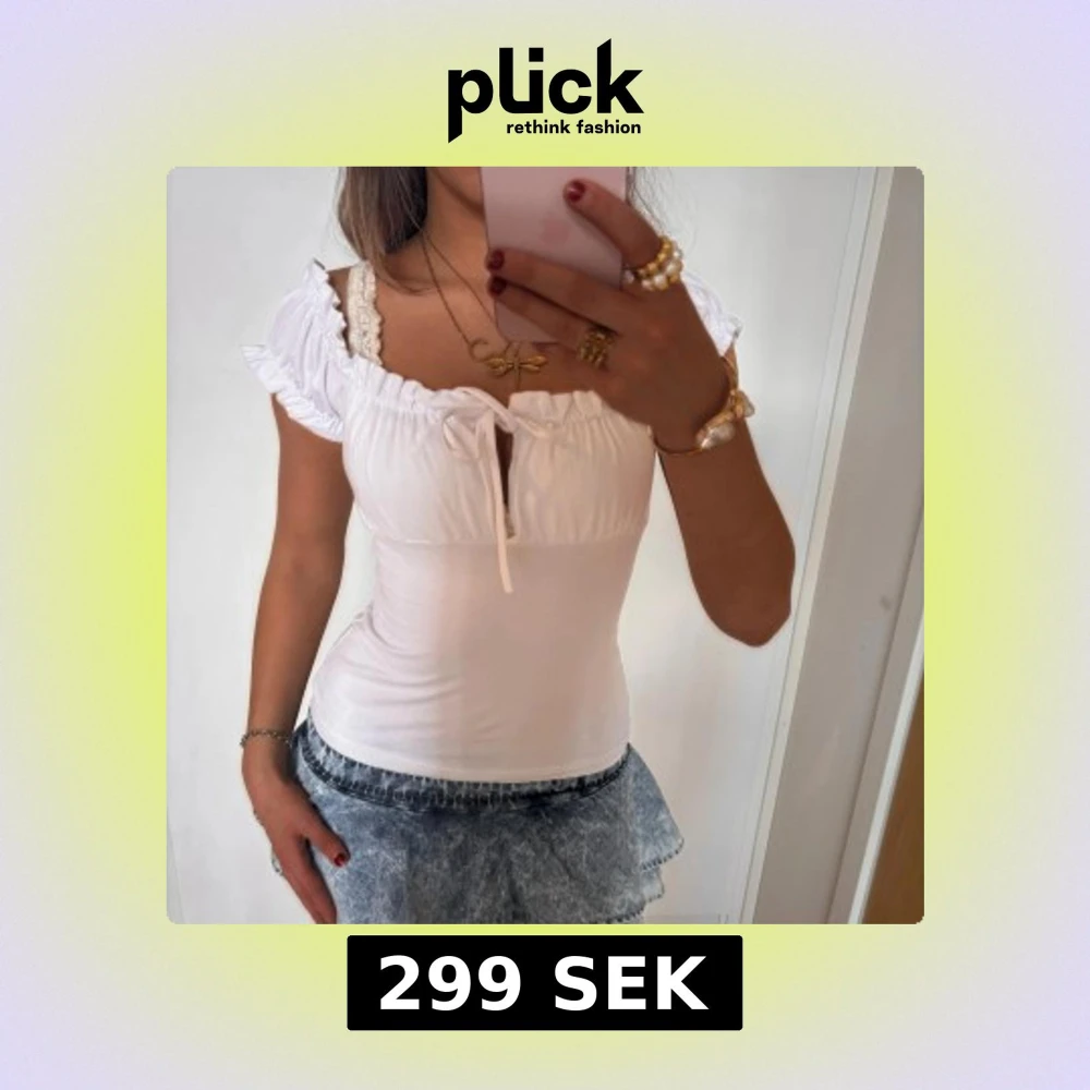 Söt vit topp. Jag är 168 och det är mina bilder, köp via köp nu direkt eller Swish, kvar tills markerad som såld ❤️strlk m/l men passar m
