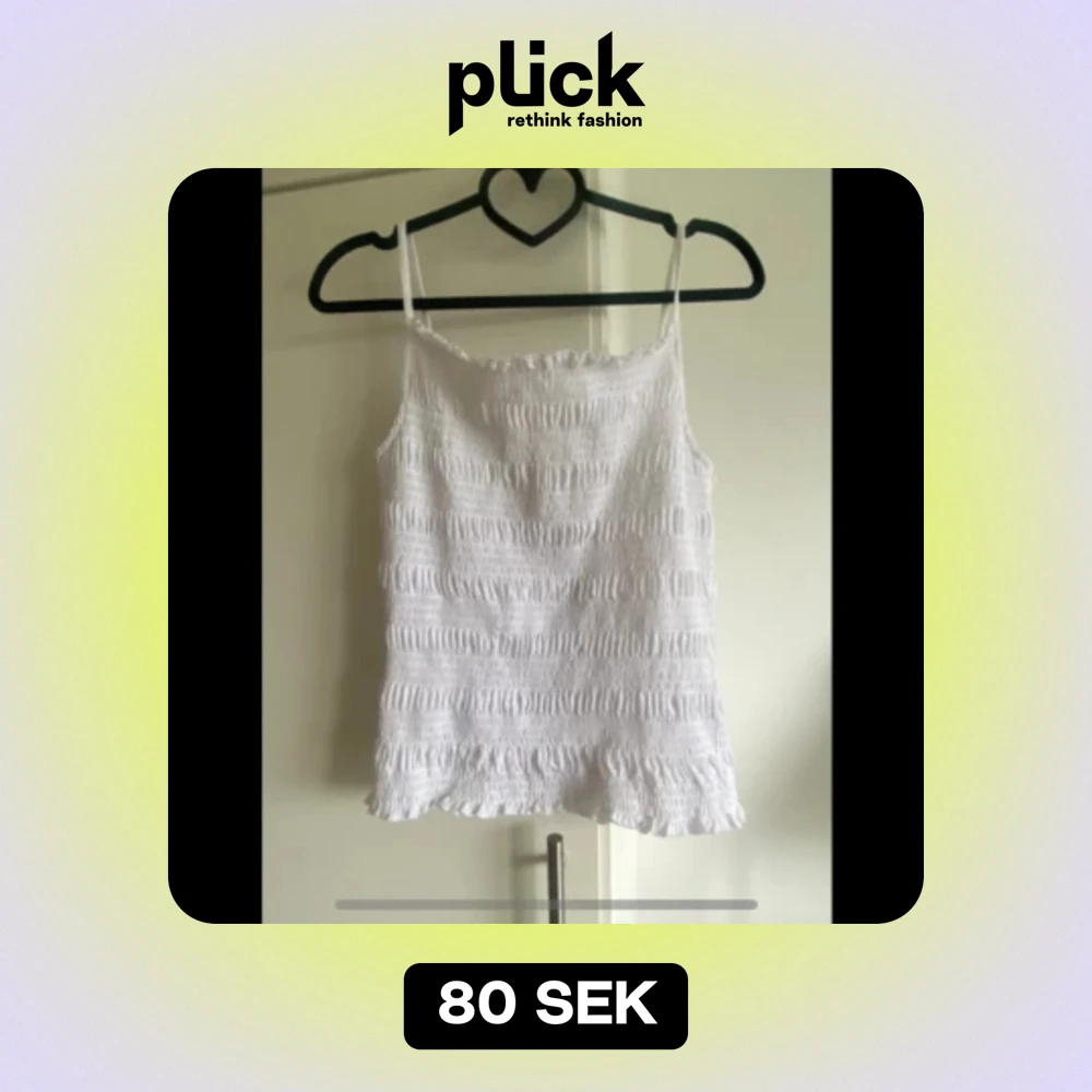 Använd vid ett tillfälle. Toppen är i strl L men eftersom att den är smockad så passar den även en S & M utan problem. Det finns en liten sminkfläck nertill på ena sidan, annars gott skick.