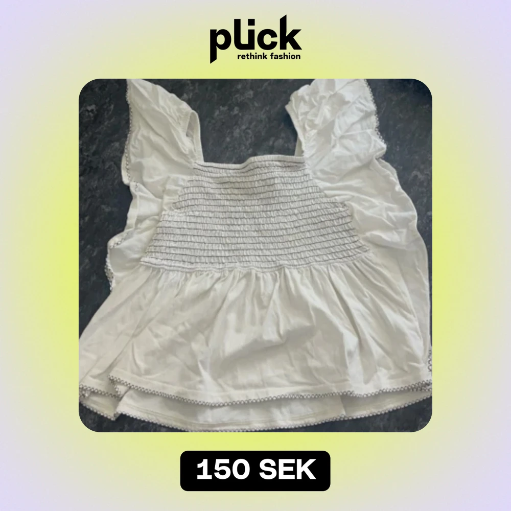 Vit tröja med volanger och fina detaljerđŸ€ AnvĂ€nd ungefĂ€r en gĂ„ng. đŸ€đŸ€
