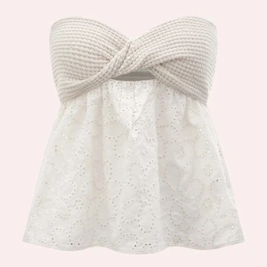 Vit bandeau tubtopp med twist - Säljer en vit bandeau tubtopp med snygg twistdetalj framtill och smockad baksida för extra komfort. Toppen är axelbandslös och har en clean, stilren look som passar perfekt till sommarens outfits.