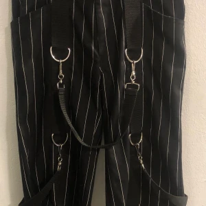 Randig linnetopp med knappar - Säljer en söt randig linnetopp med smala axelband och knappar framtill. Toppen har en v-ringad skärning och volangdetaljer nedtill som ger en luftig känsla. Färgen är vit med tunna svarta ränder. Perfekt för varma dagar och sommarhäng!