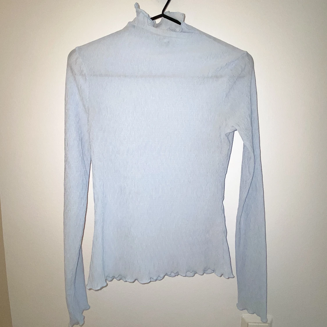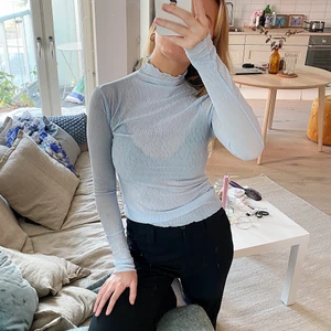 Babyblå mesh-tröja från weekday, använd 2 gånger! Den har lite smink på kragen som man kan se på tredje bilden, men det går enkelt bort i tvätten :) storlek xs men väldigt stretchig så passar s-m också skulle jag säga! Kan mötas upp i Sthlm, annars står köparen för frakt!
